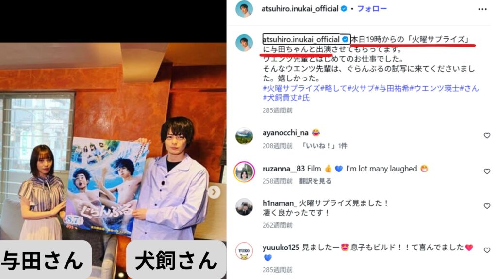 - 交際の噂時期:2020年(当時、犬飼さん26歳・与田さん20歳)